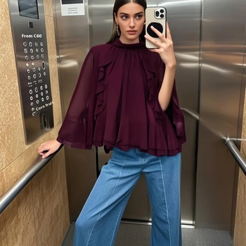 2025 Myst & Za verano Vintage camiseta nuevo vino rojo superior mariposa nudo capas decoración estilo capa francesa cubierta delgada ajuste suelto